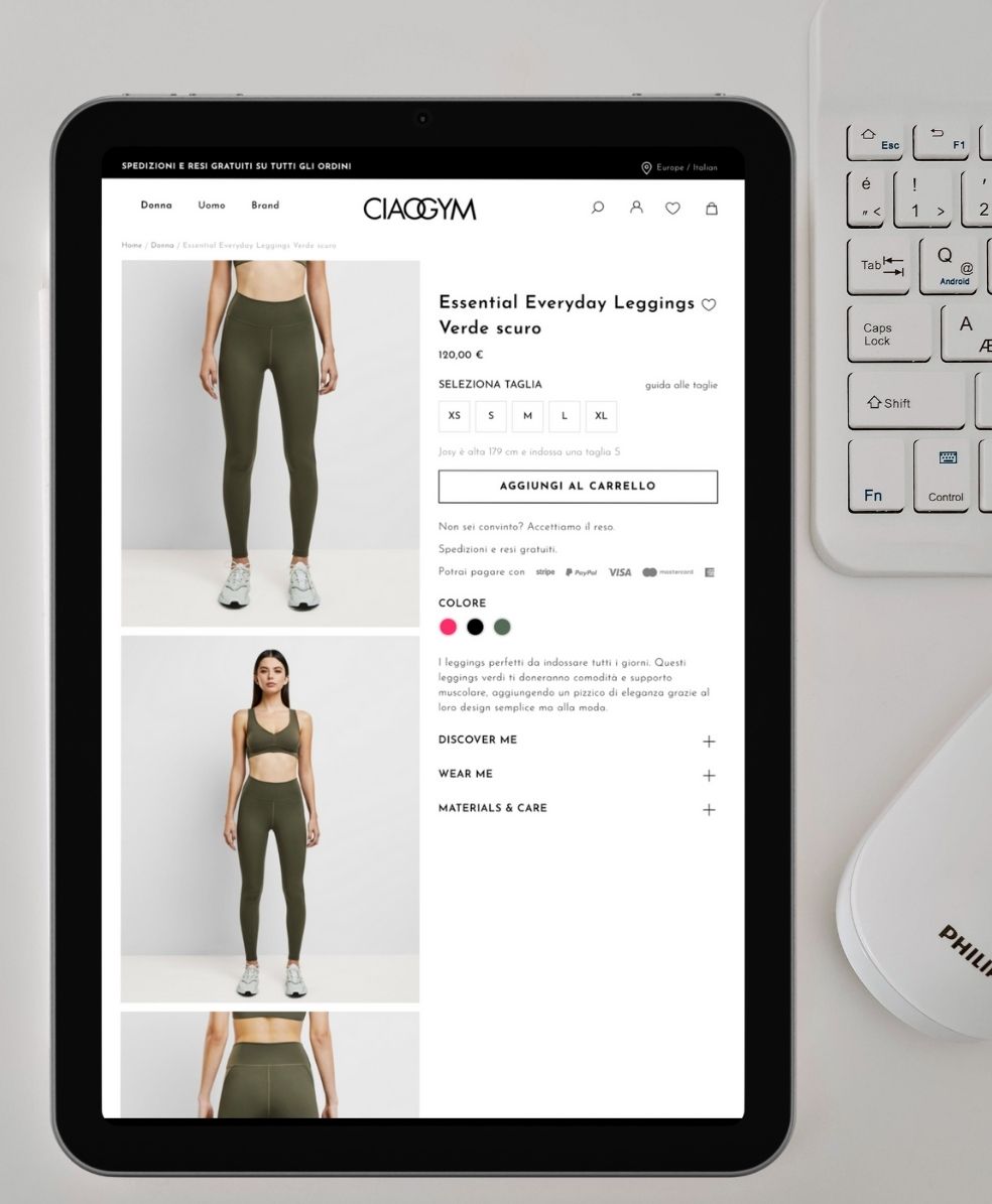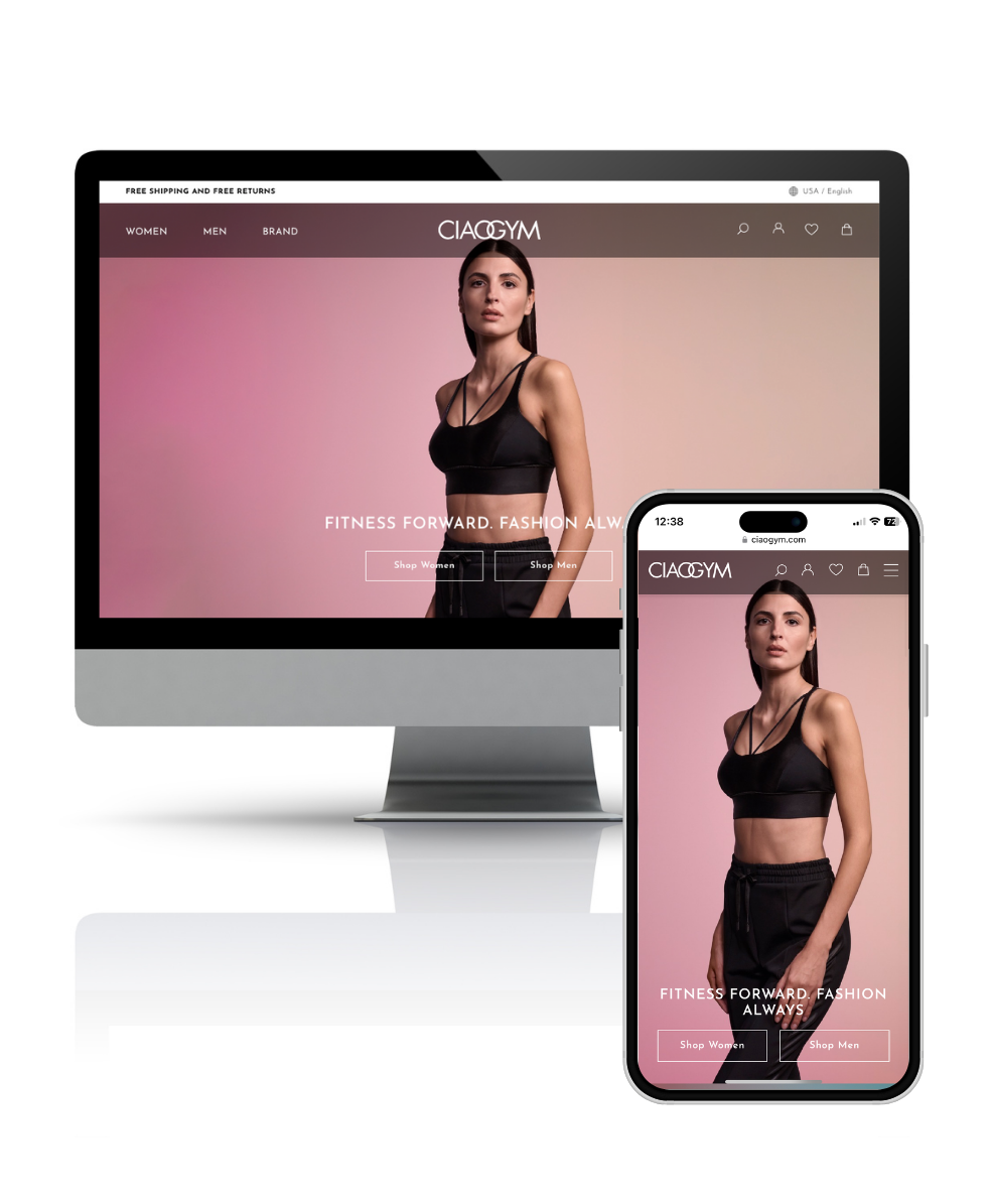 CiaoGym si è rivolto al team di Up&Up con due obiettivi principali: presidiare il mercato americano e avere un sito e-commerce la cui estetica ricordasse quella di un brand di lusso dedicato al mondo sportivo.